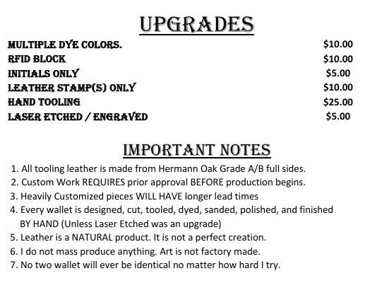 At BBBeachLeather, we are dedicated to providing high-quality, handmade leather goods. Here's some information about our pricing, customization options, and available discounts.